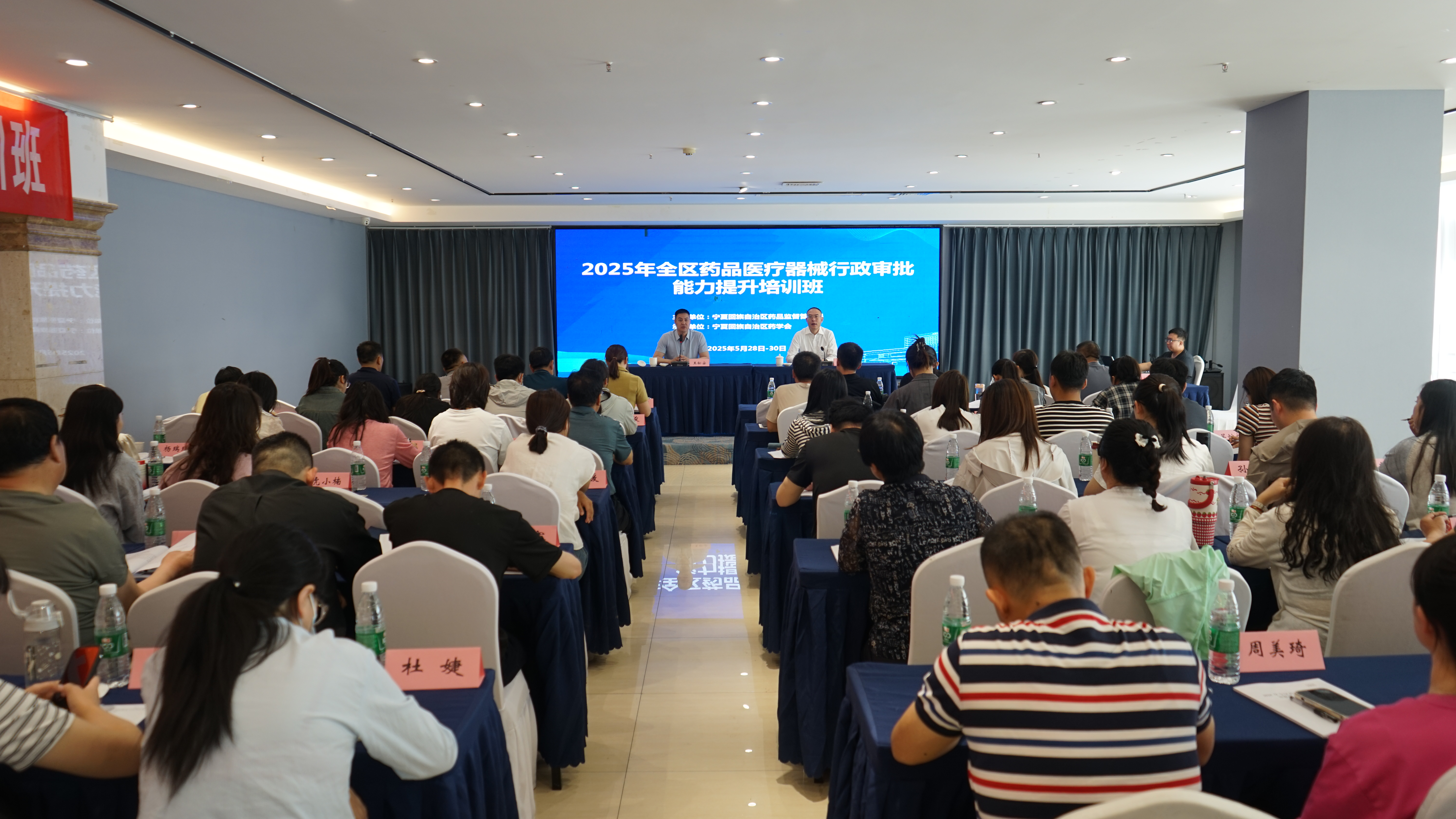为深入贯彻落实国务院、自治区人民政府全面推动“高效办成一件事”工作要求,进一步提升全区药品医疗器械行政审批工作质量和效能,成人视频 于5月29日至30日在银川市昊王国际饭店成功举办药品医疗器械行政审批能力提升培训班。来自各市、县(区)市场监督管理局及审批服务管理局的60名业务骨干参加了此次培训。